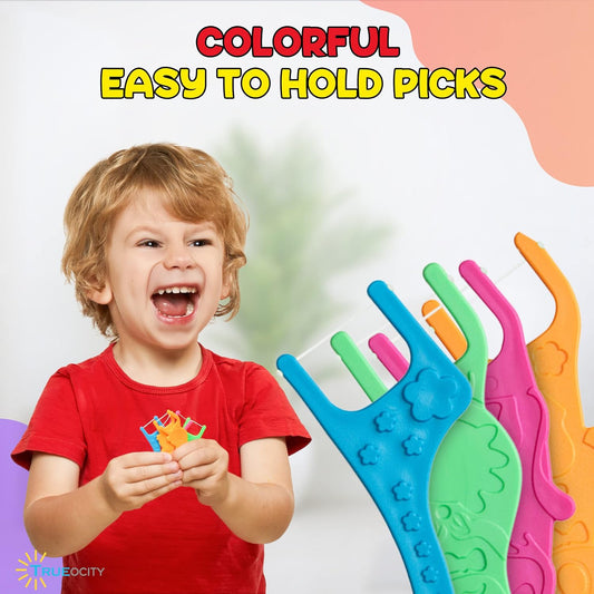 Kids Flossers Cute Animal Shapes Makes Flossing Fun, Kids Floss Picks, Glides Easy Between Teeth, Flosser Helps Prevent Tooth Decay & Gum Disease, Bubble Gum Flavored