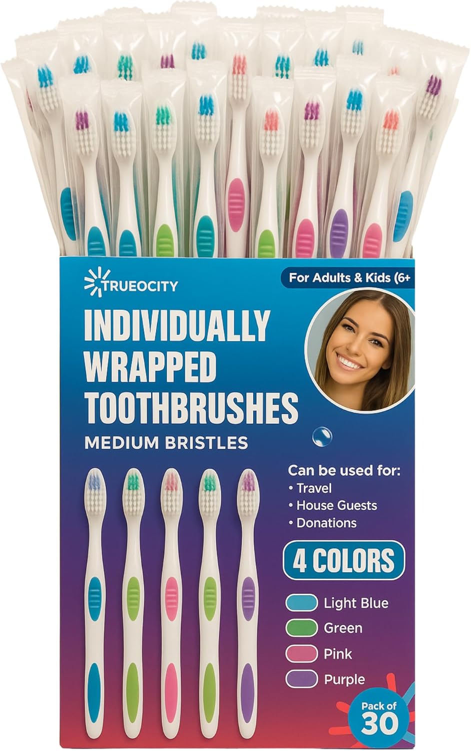 Travel Toothbrushes Bulk - Individually Wrapped - 30 Pack