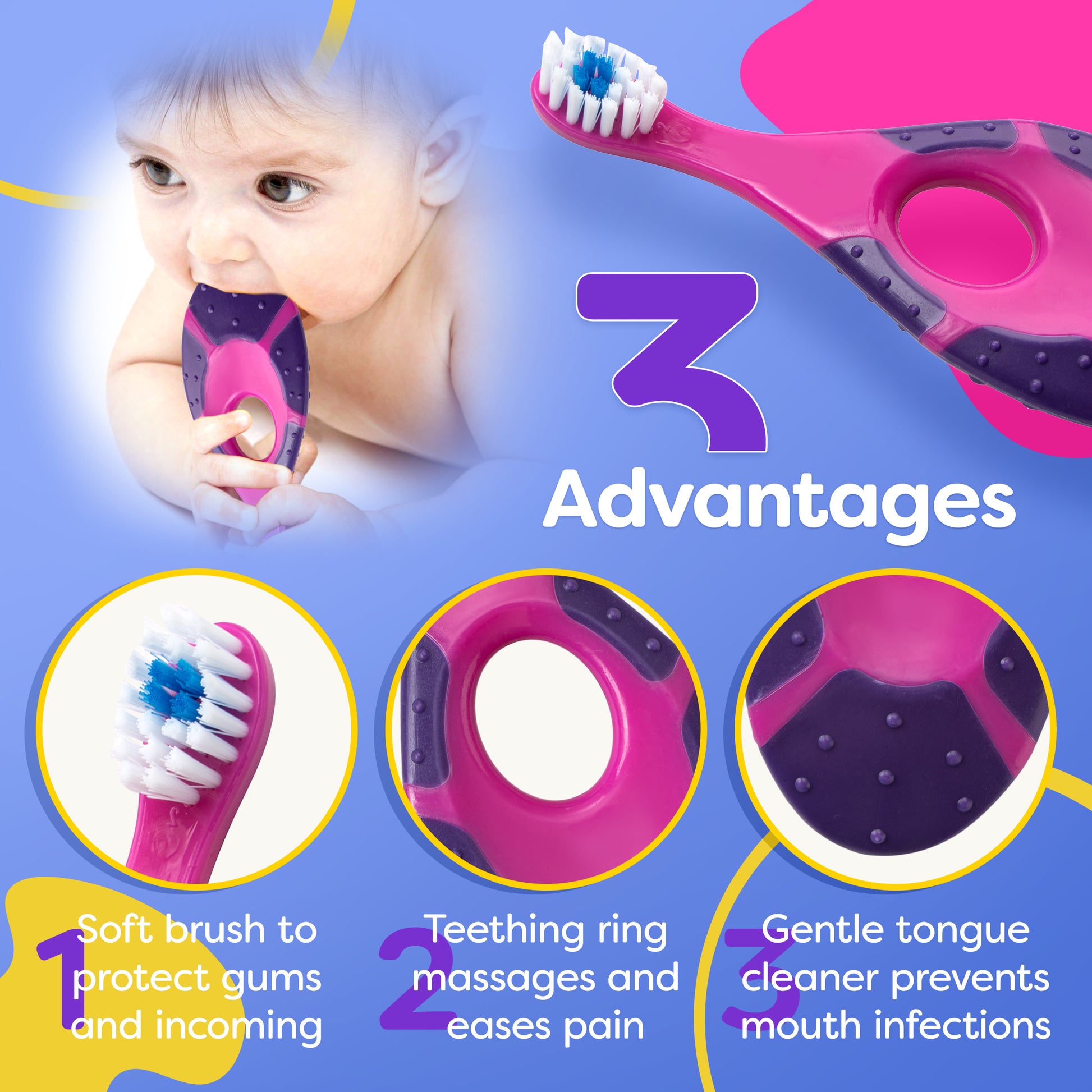 - ✅ BABY ORAL CLEANER - Are you searching for the perfect extra soft baby brush that will make your baby’s first toothbrushing experience pleasant and unforgettable? - This dentist recommended baby toothbrush is just what you need to learn your little one the basics of oral hygiene. Plus, the lovely and colourful design is made to attract the kids’ interest in brushing their teeth, so what is here not to love?