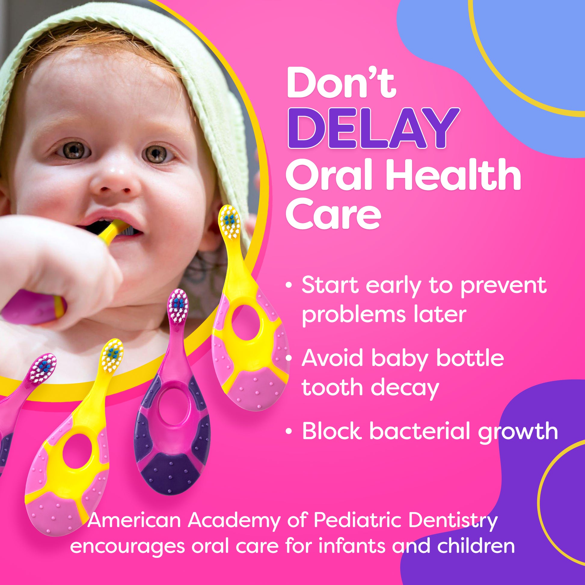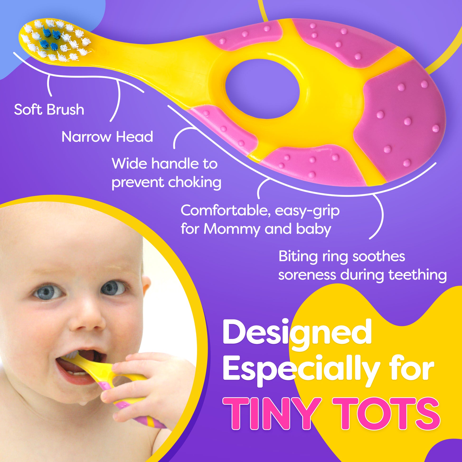 - ✅ BRING JOY TO EVERY HOME – If you’re still looking for a unique baby gift, we got you covered. All 4 of them are engineered to clean a baby’s first teeth and fit small mouths, just like theirs, ideal for babies from 0-3 years old, perfect for baby shower, birthday, registry gift, or no special occasion at all.