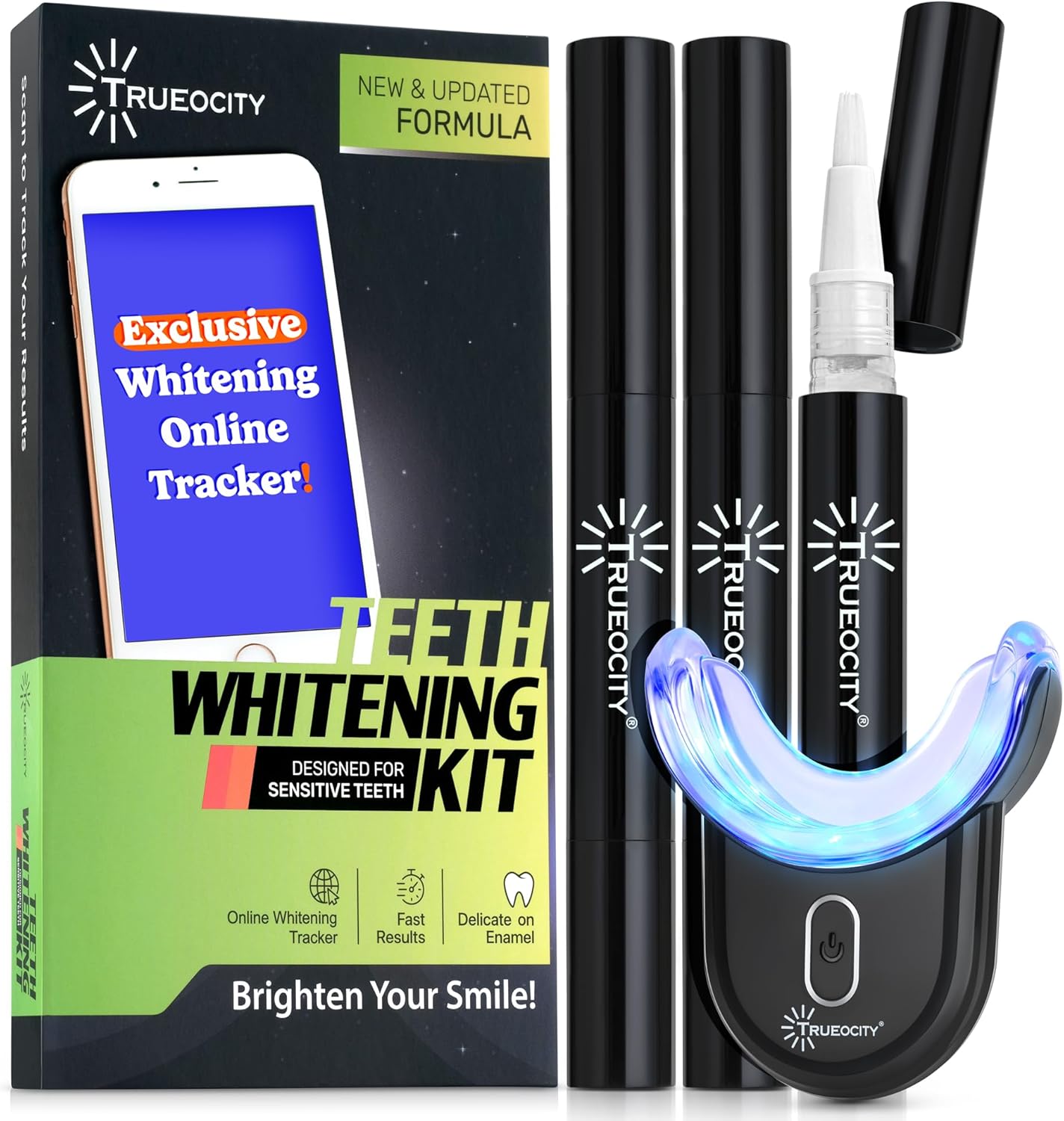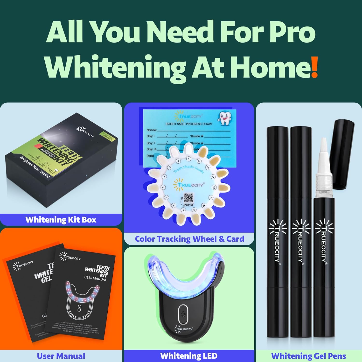 Teeth Whitening Kit with LED Teeth Whitening Light & 3 Gel Pens, Follow Your Whitening Process Online Teeth Whitening LED Light for Sensitive Teeth Fast Results LED Teeth whitening kit Enamel Safe