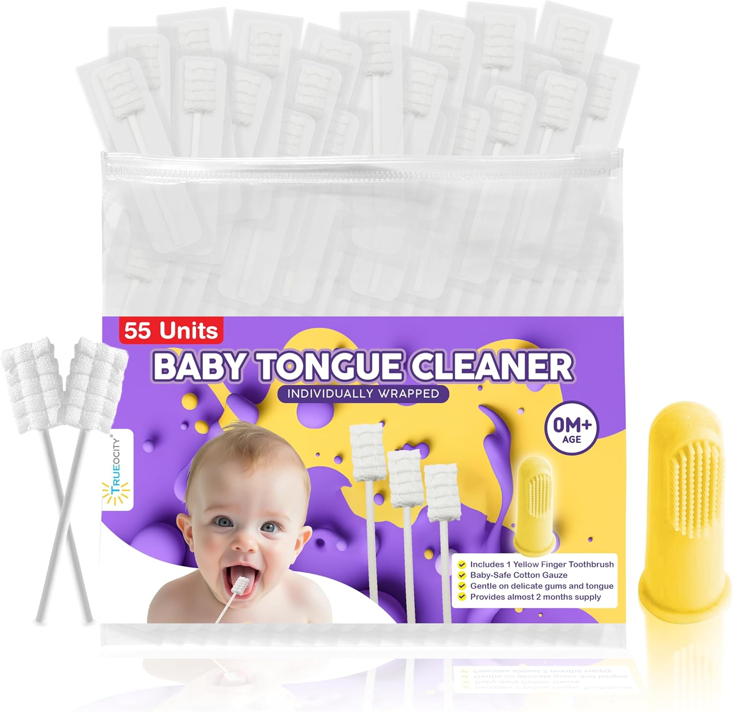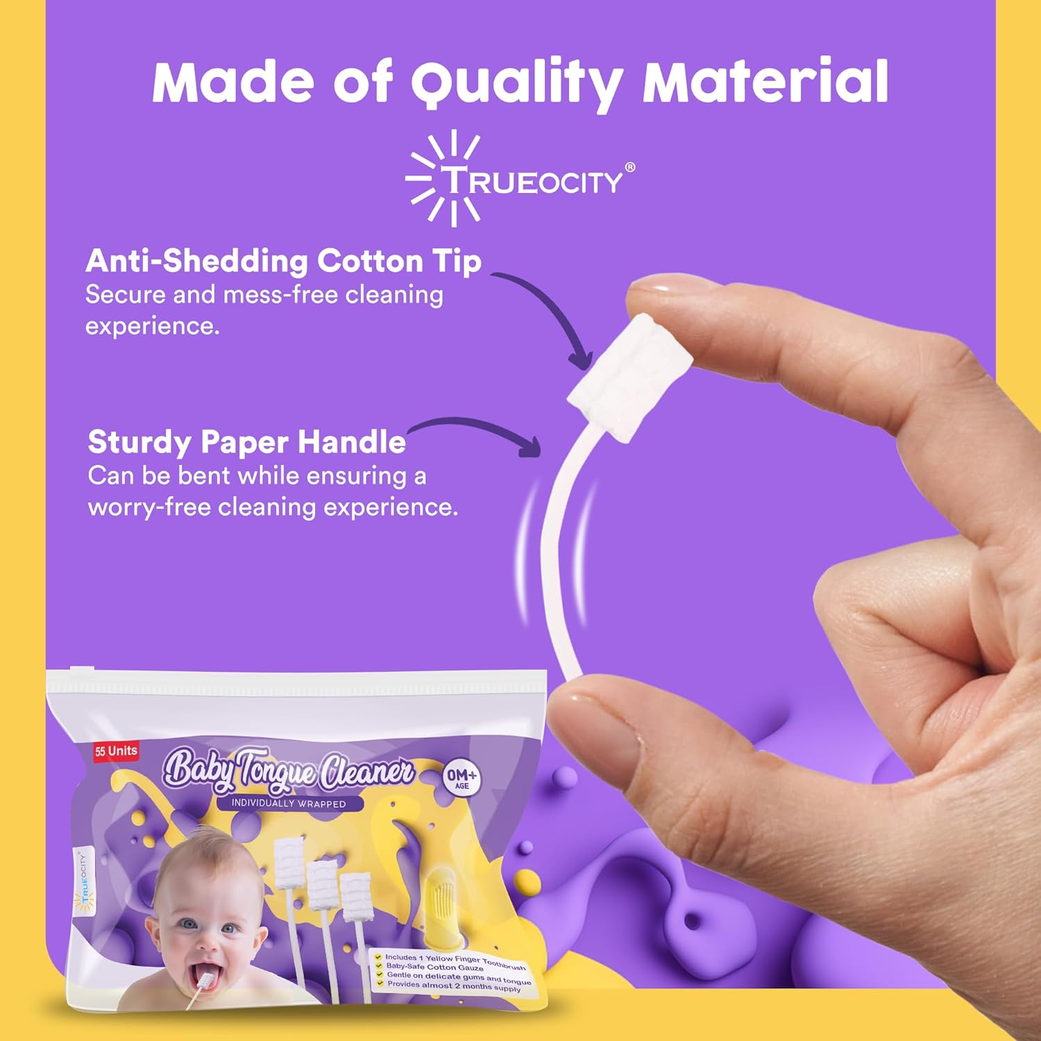 Trueocity Baby Tongue Cleaner Newborn – Soft Oral Cleaner for Infants, Gum & Mouth Cleaning for 0-3 Month Babies, Easy to Use and Safe for Daily Hygiene – Best Value Pack of 55 Units